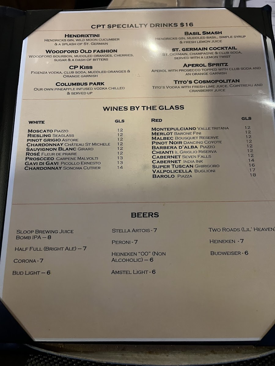 Columbus Park Trattoria Menu (Update 2025)